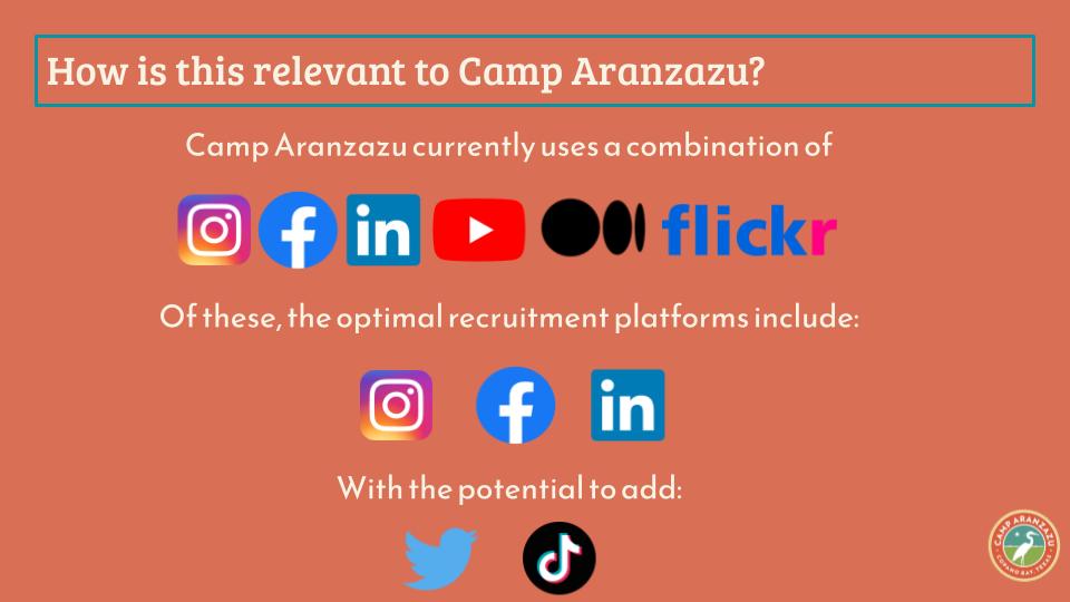 Objective: Alongside a team of 8, create a seasonal staff recruitment campaign via social media. Assess current social media engagement, survey the target audience to ascertain key interaction tactics, and determine the optimal social media posting schedule. Based on said findings, create 4-months’ worth of social media content paired with a content schedule to take advantage of key performance times.